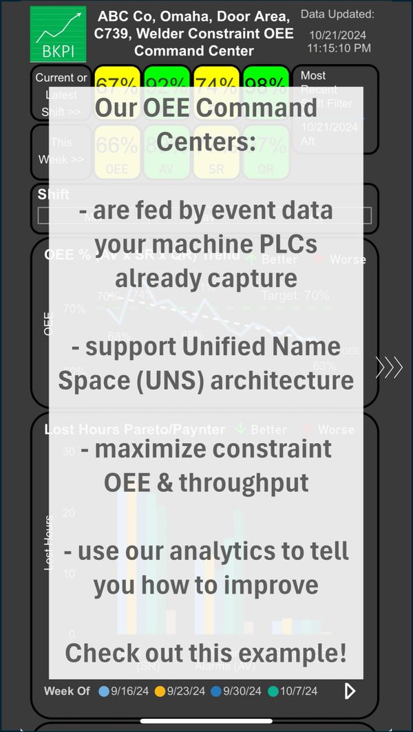 Here are examples of actual savings achieved with our OEE Command Centers using readily available data.