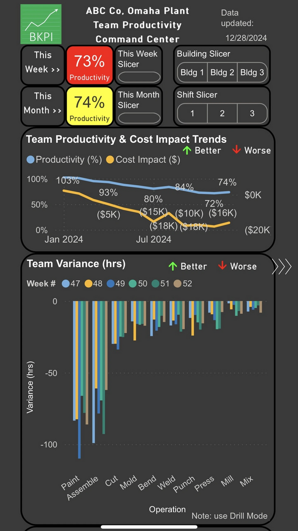 A. Use this Productivity KPI Command Center to drive producing more product with fewer resources.