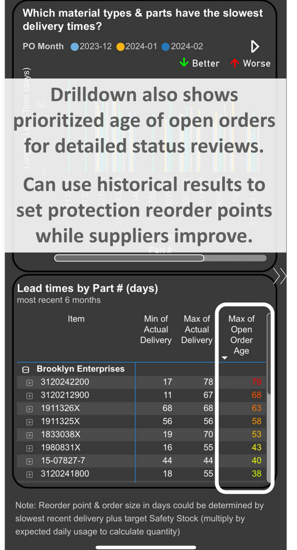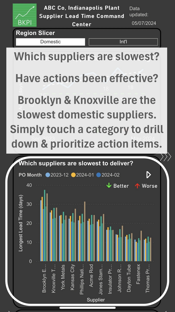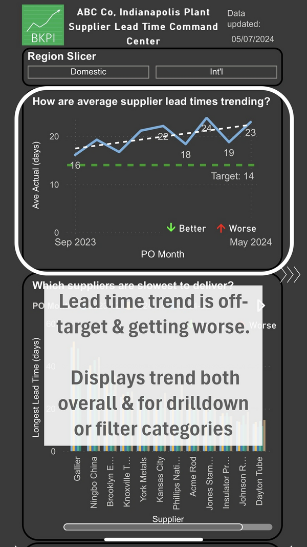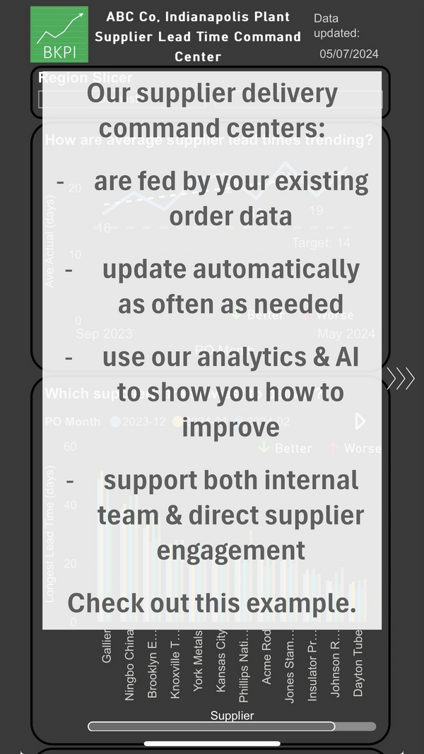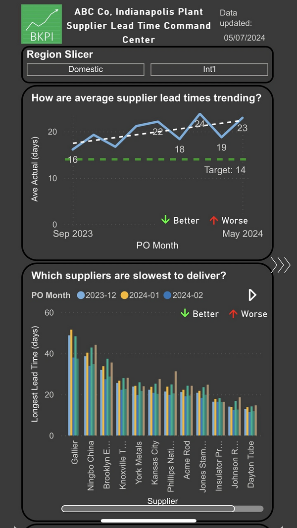 Here’s an example of such analysis, a command center for supplier delivery.