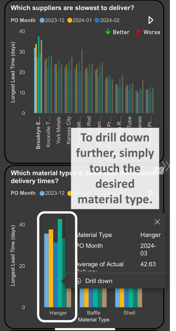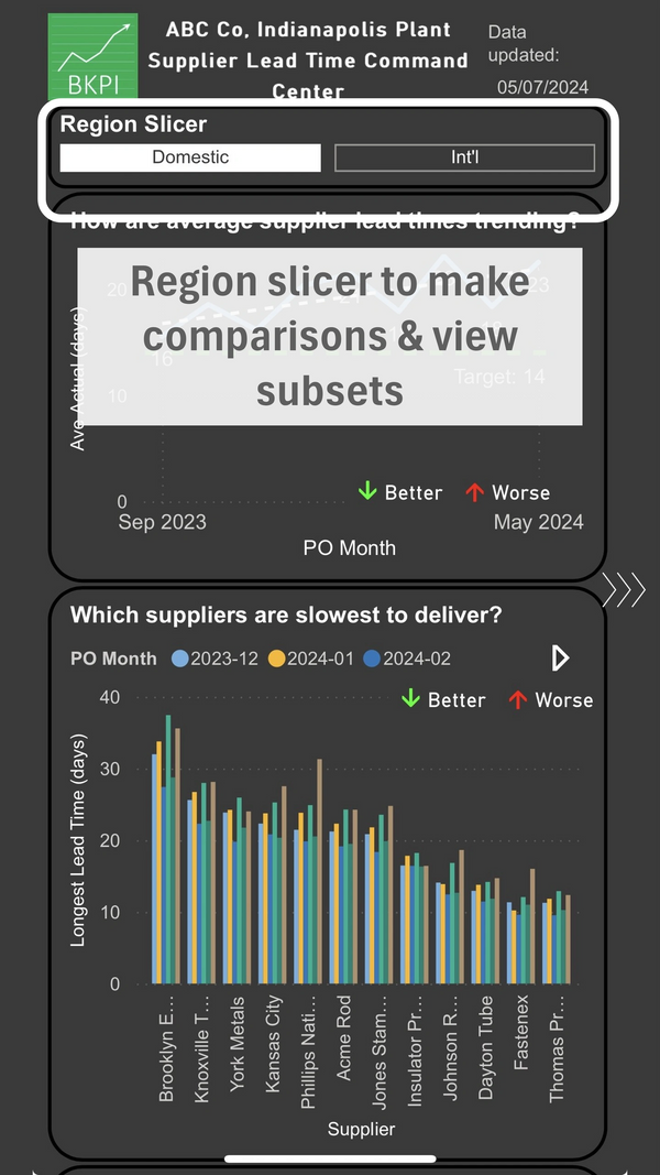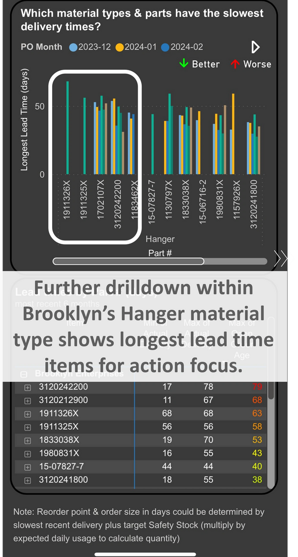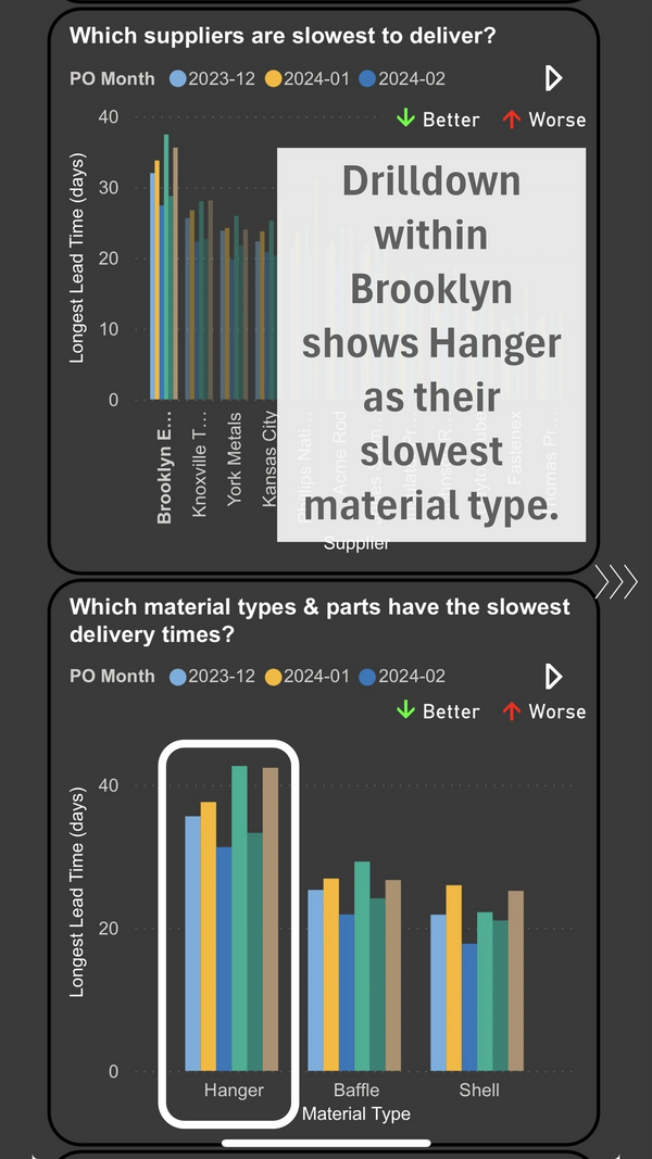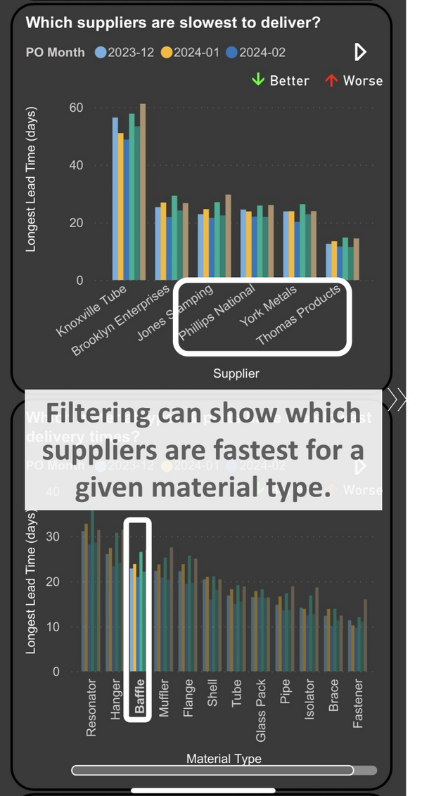 Here’s an example of such analysis, a command center for supplier delivery.